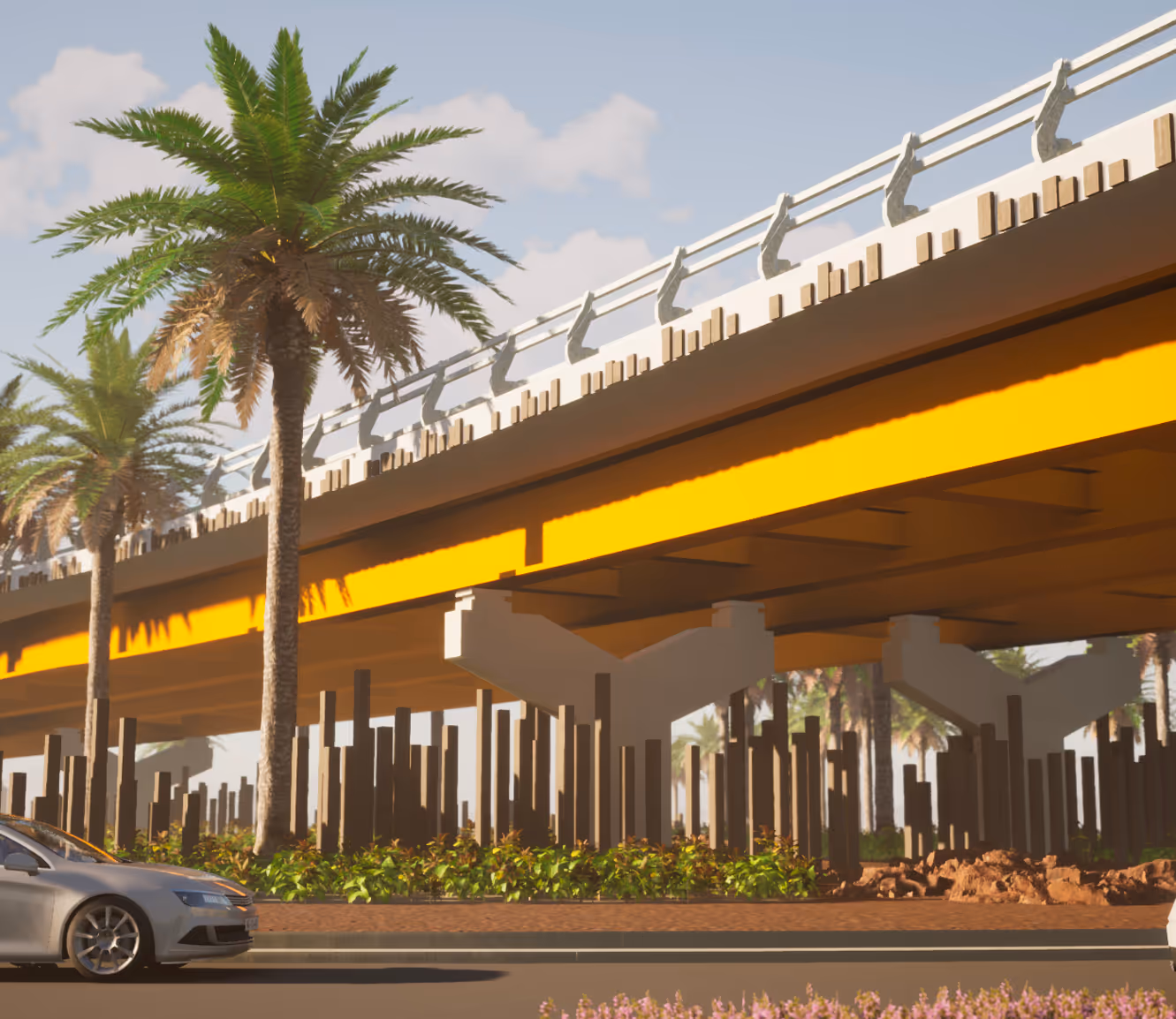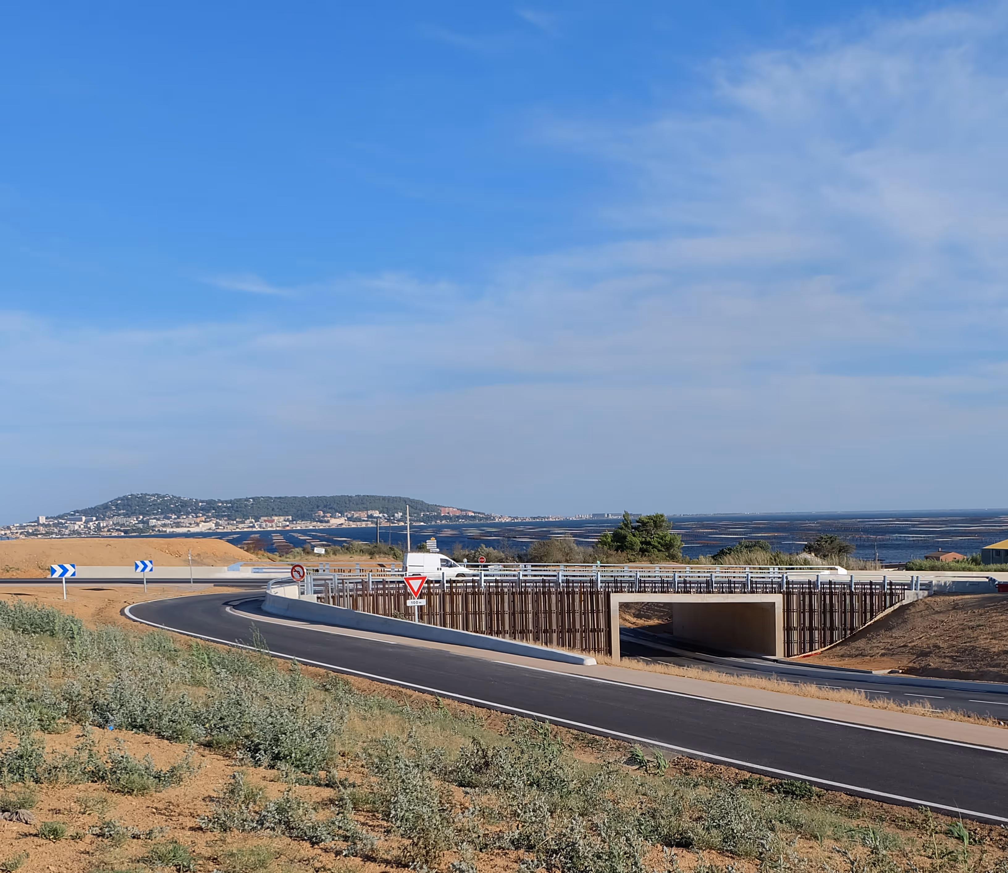 – Le maître d’ouvrage a souhaité développer une démarche architecturale ambitieuse et engagée pour intégrer au mieux l’ouvrage dans le paysage de la traversée de la Tontouta.